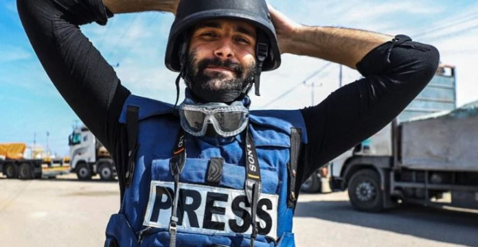 Before leaving the area devastated by Israel and killing more than 25000 innocent lives, Azaiza said in a video, “This is the last time you will see me with this heavy, stinky [press] vest. I decided to evacuate today. … Hopefully, soon I’ll jump back and help to build Gaza again.”