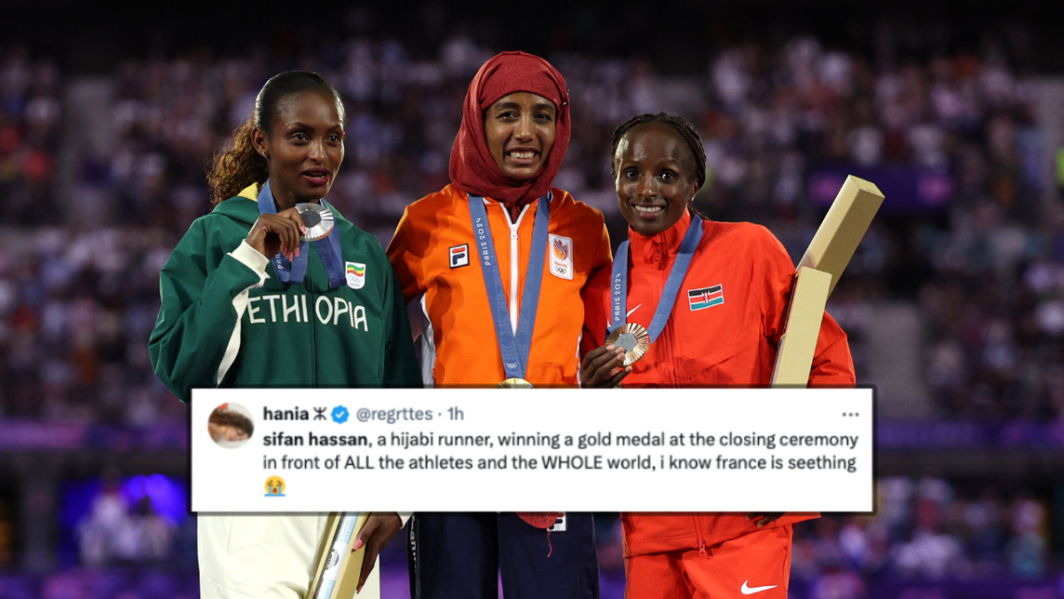“Sifan Hassan wearing her hijab at the closing ceremony as she gets the gold for winning the women’s marathon. in France.. where they’ve banned the hijab… my queen," one person wrote on X.